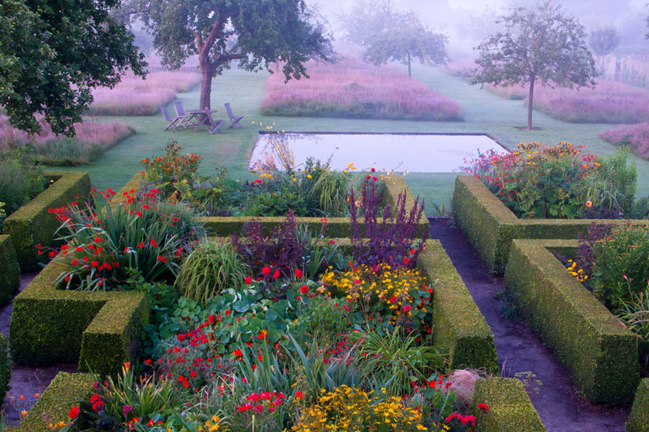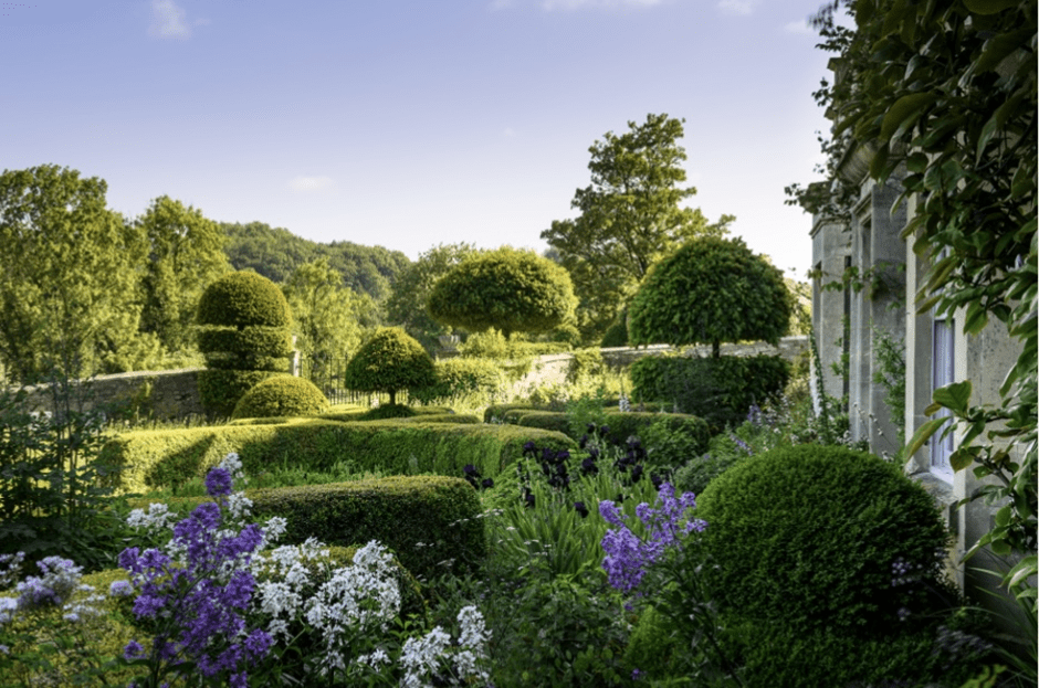Enter the garden through a beautiful 15th century arched doorway to find yourself in a garden of undeniable beauty. Interwoven paths lead to a myriad of richly planted, tumbling borders, viewpoints and hidden areas with pools, streams, wildflower meadows and an orchard. Originally created by the hugely talented husband and wife design duo, Isabel and Julian Bannerman, and now wonderfully cared for by Julia and Richard Boissevain, the emphasis is on scent, structure and romance, set amid a remarkable cluster of manorial buildings.