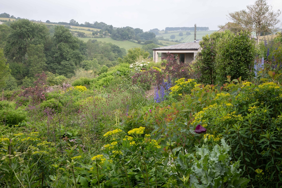 A wonderful opportunity to be guided around the atmospheric acre garden of Stephen Anderton, The Times garden journalist and three-time winner of the Garden Writer’s Guild award. The enclosed flower garden has been planted with a lush mixture of modern and traditional perennials, interspersed with clipped evergreens; specialities include ferns, succulents and South African plants. Behind the house simple green terraces retained by sculpted hedges offer distant valley and mountain views. A scented garden of shrubs, bulbs and meadow grass adjoins a small orchard and in the river valley below can be found a steep 15 acre oak woodland, maintained exclusively for its carpet of mosses.