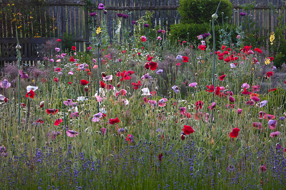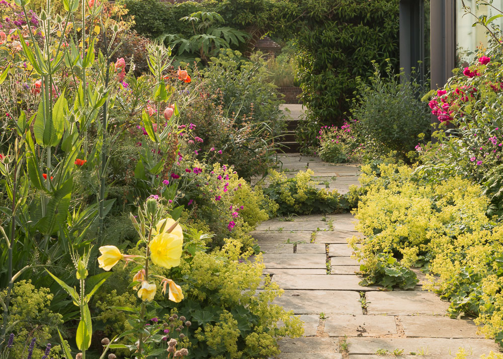 Jane, its equally charming, plantaholic, owner and creator, with a great eye for colour combinations, will be on hand to greet us on arrival to explain how she and her husband created this one and a half acre, beautifully informal, romantic country garden over a period of forty years. Gardened organically, It is now a place of extreme beauty, and, as you enter the garden, you are likely to be greeted with informally planted, colour themed beds containing a profusion of roses, hardy geraniums, foxgloves and numerous other flowering, scrambling climbers and self seeders. Moving beyond the flower borders we’ll discover a raised beds kitchen garden area leading onto a delightful woodland meadow and deep pond all designed to encourage greater wildlife diversity. When Rosie visited, Jane gently parted Crinodendron branches on the woodland meadow edge to reveal a beautifully constructed dormouse nest.